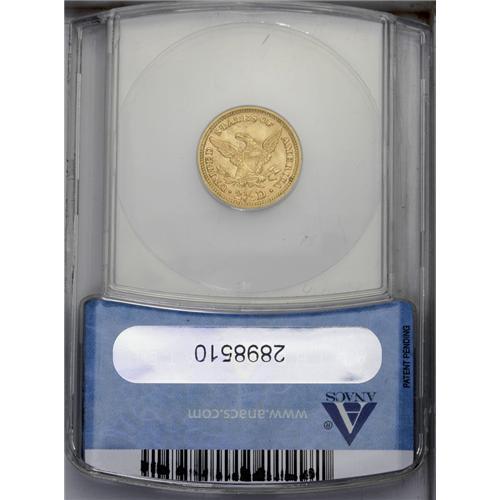 <B>1888<$2 1/2> MS63 ANACS.</B></I> Select and well struck with pleasing luster. The yellow-orange surfaces have copper spots along the right obverse rim and one above the eagle's head.