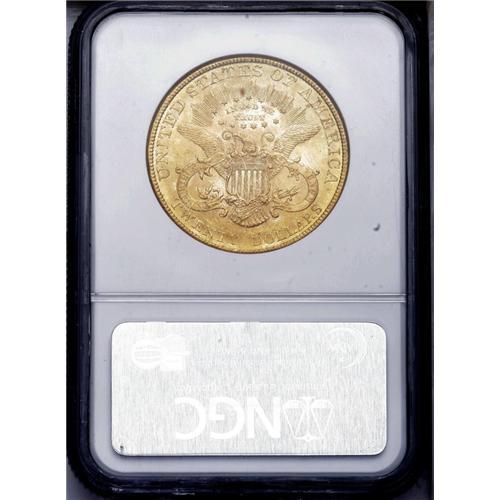 <B>1888<$20> MS62 NGC.</B></I> Orange-gold surfaces are imbued with traces of light tan, and display soft luster. Moderate abrasions occur on Liberty's cheek, and another is noted on the upper part of the shield. The design features are well impressed throughout. Census: 105 in 62, 12 finer (3/06). <BR><BR><B>Important notice:</B> Heritage usually auctions material at the rate of 200-250 lots per hour. On some occasions eBay Live bid software or the Internet may not be able to keep up with the pace of the auction. We recommend placing a realistic absentee bid now as insurance to avoid disappointment. Occasionally the auctioneer may eliminate or reject an eBay Live bid, and the auctioneer may also reopen a lot after the close of the eBay live bidding (usually because we missed an audience bid), and may reject your bid even if it shows you as the winning bidder. By bidding via eBay Live, you agree that Heritage may award the lot to another bidder at its sole discretion under the circumstances described above or any other reasonable circumstances. Since eBay bids are not shown to us until we open the lot on the floor, we treat those bids just like floor bids. In most cases the floor responds before the eBay bid is presented to us, due to Internet lag time, so for consistency we have made it a policy that floor bids are always considered first over tie eBay live bids. Also please note that all Heritage lots purchased through eBay Live carry a 20% Buyer's Premium. Please make sure you read the Terms and Conditions before you bid. This lot is being auctioned in conjunction with a live floor auction by Heritage Galleries & Auctioneers. All final auction and invoice information will be supplied by Heritage Galleries & Auctioneers, and all other information should be considered preliminary. Lot:4310 <BR><BR><B>Winning Notification and Billing:</B> After the FINAL session in this auction is complete, Heritage will send e-mail and snail mail invoices. This process normally takes several days. All final auction and invoice information will be supplied by Heritage Galleries & Auctioneers, and all other information should be considered preliminary. <BR><BR>This auction will be conducted on a live auction floor and over the Internet through eBay Live. If you choose to place an absentee bid, please take a moment to <font color='#0000ff'><u><a href='http://pages.ebay.com/liveauctions/help/before/laabsentee.html'>learn how eBay Live absentee bidding works</a></u></font><font color='#000000'>