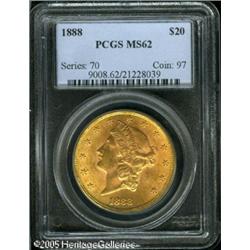 <B>1888 $20 MS62 PCGS.</B></I> This slightly better date issue increases significantly in rarity in a Mint State 63 level of preservation. The specimen offered here is very attractive for the grade and boasts surfaces and eye appeal expected of a higher graded specimen.<BR><I>Ex: Heritage 1/03.</B></I>.<BR><I>From The Richard J. Chouinard Collection of United States Coins, Part Two.</B></I> Lot:9198