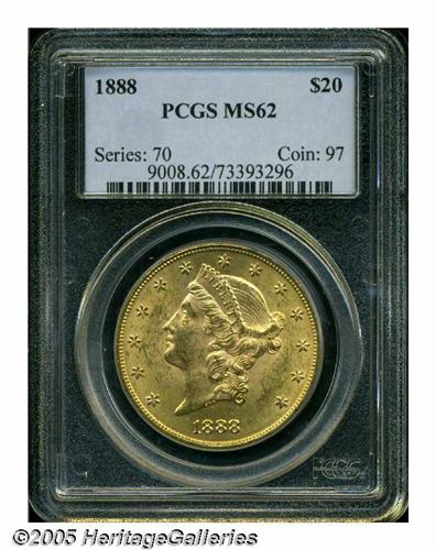 <B>1888<$20> MS62 PCGS.</B></I> Well struck, with apricot-gold surfaces that are a trifle scuffy. An ideal type coin.
