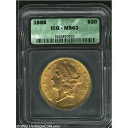 1888 $20 MS63 ICG. A scarce Type Three Double Eagle and seldom located in Uncirculated grades. Very.