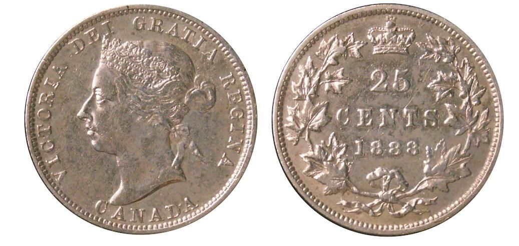 1888 25¢ EF/AU. Nice white example with light lustre.