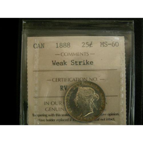 1888 25¢ ICCS MS-60 Weak strike with some lustre