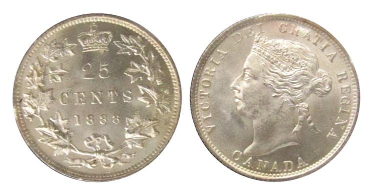 1888 25¢ ICCS MS65. Gem blast white with full lustre. Flashy.