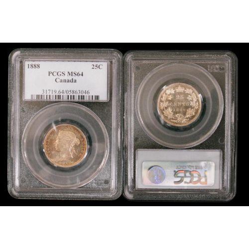 1888 25¢ PCGS MS64. A superbly attractive example with cameo finish and nest to perfect reverse.