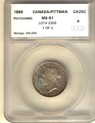 1888 25¢ SEGS MS61. Pittman example.