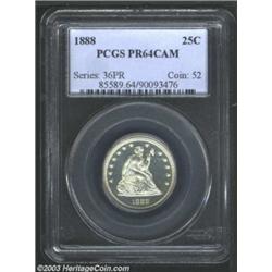 <TABLE cellSpacing=0 cellPadding=0 width="100%" bgColor=#000000 border=0><TBODY><TR><TD width="100%"><TABLE cellSpacing=1 cellPadding=3 width="100%" border=0><TBODY><TR><TD width="100%" bgColor=#79735c><FONT face=arial color=#ffffff size=3><B>Description</B> </FONT></TD></TR><TR><TD width="100%" bgColor=#ffffff><FONT face=arial size=2><B>1888 25C PR64 Cameo PCGS.</B></I> Snowy-white surfaces with stark contrast and immense eye appeal. Population: 4 in 64 Cameo, 2 finer (8/03). </FONT></TD></TR></TBODY></TABLE></TD></TR></TBODY></TABLE><BR><A name=PricesRealized></A><TABLE cellSpacing=0 cellPadding=0 width="100%" bgColor=#000000 border=0><TBODY><TR><TD width="100%"><TABLE cellSpacing=1 cellPadding=3 width="100%" border=0><TBODY><TR><TD width="100%" bgColor=#79735c><A name=PR><FONT face=arial color=#ffffff size=3><B>Previous Prices from Heritage Auctions</B> </FONT></A></TD></TR><TR><TD bgColor=#f6f6ed><TABLE cellSpacing=0 cellPadding=0 width="100%" border=1><TBODY><TR><TD align=middle width="33%"><B>Date</B></TD><TD align=middle width="33%"><B>Service</B></TD><TD align=middle width="33%"><B>Price</B></TD></TR><TR bgColor=whitesmoke><TD width="33%"><B>11/23/2002</B></TD><TD width="33%">PCGS</TD><TD width="33%">$1,207.50</TD></TR><TR bgColor=whitesmoke><TD width="33%"><B>06/08/2002</B></TD><TD width="33%">PCGS</TD><TD width="33%">$776.25</TD></TR></TBODY></TABLE></TD></TR><TR><TD bgColor=#ffffff><FONT face=arial size=1 ?>PLEASE NOTE: All prices realized reflect the final hammer price PLUS the buyer's premium in auctions that charge a buyer's premium. Each item has a notation at the top of the listing indicating whether that lot included a buyer's premium. Example: A item that sells with a final hammer price of $100 and a 20% buyer's premium will display with a price realized of $120. All information listed is intended to be as accurate as possible, but errors are possible. Please use this guide carefully and inform us of any inaccuracies. </FONT></TD></TR></TBODY></TABLE></TD></TR></TBODY></TABLE><BR><TABLE cellSpacing=0 cellPadding=0 width="100%" bgColor=#000000 border=0><TBODY><TR><TD width="100%"><TABLE cellSpacing=1 cellPadding=3 width="100%" border=0><TBODY><TR><TD width="100%" bgColor=#79735c colSpan=6><FONT face=arial color=#ffffff size=3><B>Price Guide*</B> </FONT></TD></TR><TR bgColor=#f6f6ed><TD align=middle><B>Grade</B> </TD><TD align=middle><B>Coin World<BR>(Trends)</B> </TD><TD align=middle><B>Numismedia<BR>Retail</B> </TD><TD align=middle><B>Numismedia<BR>Wholesale</B> </TD><TD align=middle><B>Coin<BR>Universe</B> </TD><TD align=middle><B>Heritage<BR>Value Index</B> </TD></TR><TR bgColor=#ffffff><TD align=middle>63</TD><TD align=right>---</TD><TD align=right>---</TD><TD align=right>---</TD><TD align=right>---</TD><TD align=right>$427.50</TD></TR><TR style="FONT-WEIGHT: bold" bgColor=#cccfdd><TD align=middle>64</TD><TD align=right>---</TD><TD align=right>---</TD><TD align=right>---</TD><TD align=right>---</TD><TD align=right>$751.73</TD></TR><TR bgColor=#ffffff><TD align=middle>65</TD><TD align=right>---</TD><TD align=right>---</TD><TD align=right>---</TD><TD align=right>---</TD><TD align=right>$1,357.00</TD></TR><TR bgColor=#ffffff><TD colSpan=6><FONT size=1>*All information listed is intended to be as accurate as possible, but errors are possible. No item may be returned or refused based on this information which is provided as a service to our customers. You should contact each pricing source directly to determine the accuracy of this information. </FONT></TD></TR></TBODY></TABLE></TD></TR></TBODY></TABLE><BR><TABLE cellSpacing=0 cellPadding=0 width="100%" bgColor=#000000 border=0><TBODY><TR><TD width="100%"><TABLE cellSpacing=1 cellPadding=3 width="100%" border=0><TBODY><TR><TD width="100%" bgColor=#79735c><FONT face=arial color=#ffffff size=3><B>Population Guide</B> </FONT></TD></TR><TR bgColor=#ffffff><TD align=middle><!-- Begin Output of Population Grid--><TABLE cellSpacing=0 cellPadding=0 width="100%" border=0><TBODY><TR><TD vAlign=center><TABLE cellSpacing=0 width="100%" border=1 cellsadding="3"><TBODY><TR><TD vAlign=center><TABLE cellSpacing=0 cellPadding=3 width="100%" border=1><TBODY><TR><TD vAlign=center align=middle bgColor=#f0f1e8 colSpan=2 <CENTER><FONT face=Arial size=2><B>PCGS Pop </B></FONT><CENTER></CENTER></TD><TD vAlign=center align=middle bgColor=#f0f1e8 colSpan=2><CENTER><FONT face=Arial size=2><B>NGC Pop</B></CENTER></FONT></TD></TR><TR><TD vAlign=center><FONT face=Arial size=2>(64)</FONT> </TD><TD vAlign=center align=right><FONT face=Arial size=2>4</FONT> </TD><TD vAlign=center><FONT face=Arial size=2>(64)</FONT> </TD><TD vAlign=center align=right><FONT face=Arial size=2>3</FONT> </TD></TR><TR><TD vAlign=center><FONT face=Arial size=2>(>64)</FONT> </TD><TD vAlign=center align=right><FONT face=Arial size=2>2</FONT> </TD><TD vAlign=center><FONT face=Arial size=2>(>64)</FONT> </TD><TD vAlign=center align=right><FONT face=Arial size=2>7</FONT> </TD></TR></TBODY></TABLE></TD></TR></TBODY></TABLE></TD></TR></TBODY></TABLE><!-- End Output of Population Grid--> Important notice: Heritage usually auctions material at the rate of 200-250 lots per hour. On some occasions eBay Live bid software or the Internet may not be able to keep up with the pace of the auction. We recommend placing a realistic absentee bid now as insurance to avoid disappointment. Occasionally the auctioneer may eliminate or reject an eBay Live bid, and the auctioneer may also reopen a lot after the close of the eBay live bidding (usually because we missed an audience bid), and may reject your bid even if it shows you as the winning bidder. By bidding via eBay Live, you agree that Heritage may award the lot to another bidder at its sole discretion under the circumstances described above or any other reasonable circumstances. Also please note that all Heritage lots purchased through eBay Live carry a 20% Buyer's Premium. Please make sure you read the Terms and Conditions before you bid.</TD></
