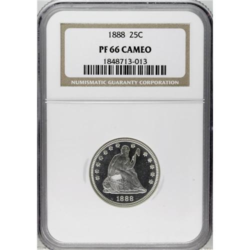 1888 25C PR66 Cameo NGC. A stunningly beautiful, all-w