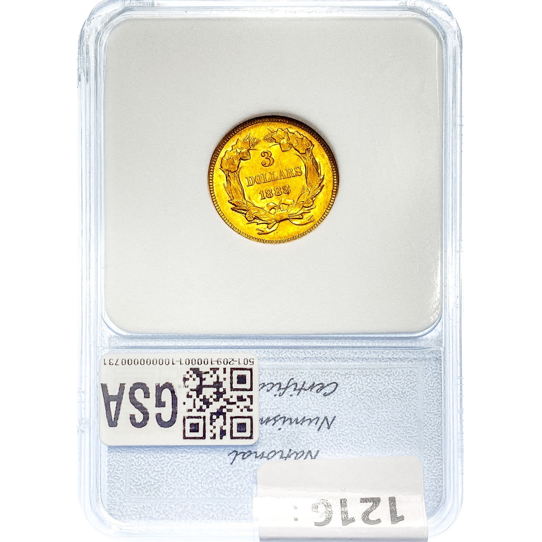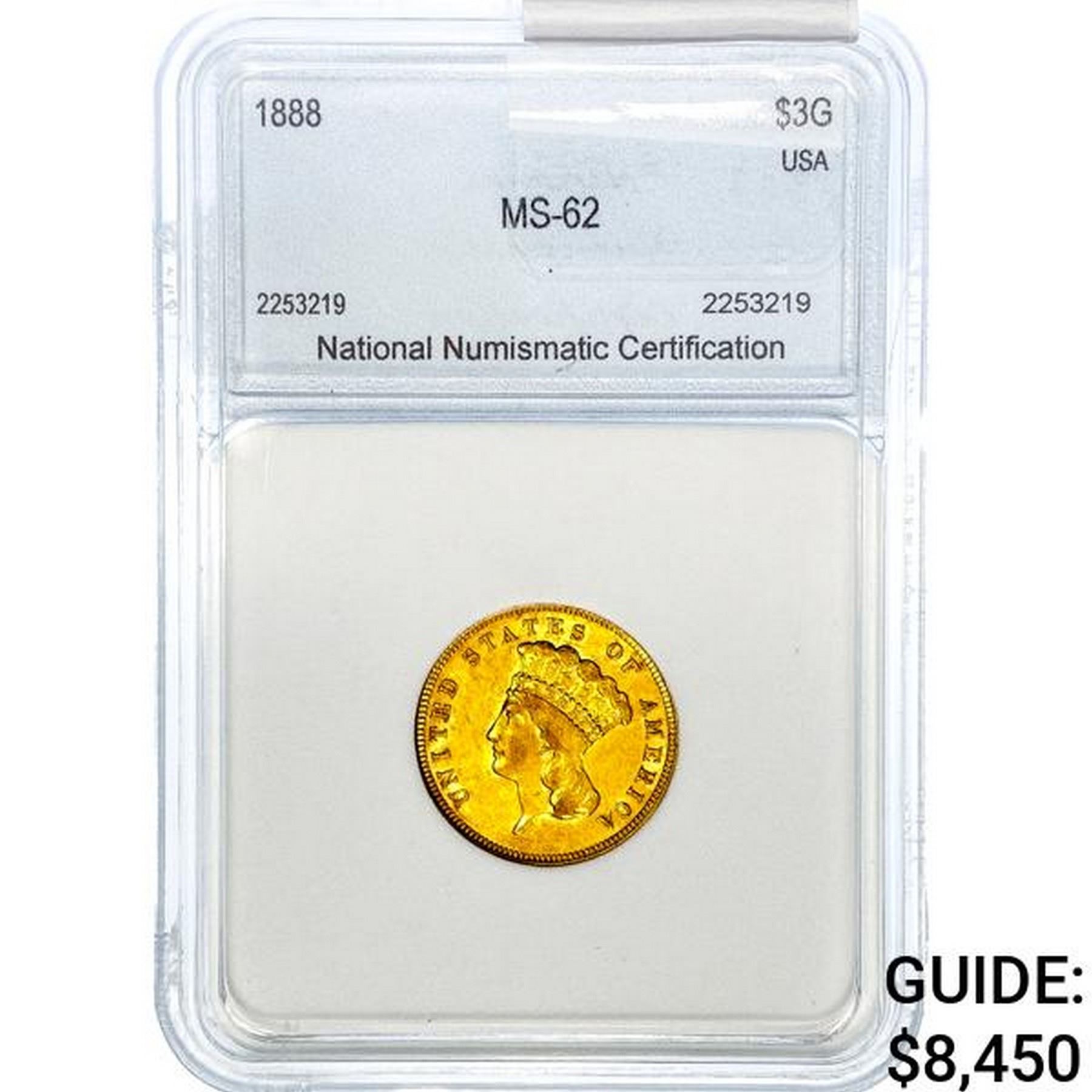 1888 $3 Gold Piece NNC MS62