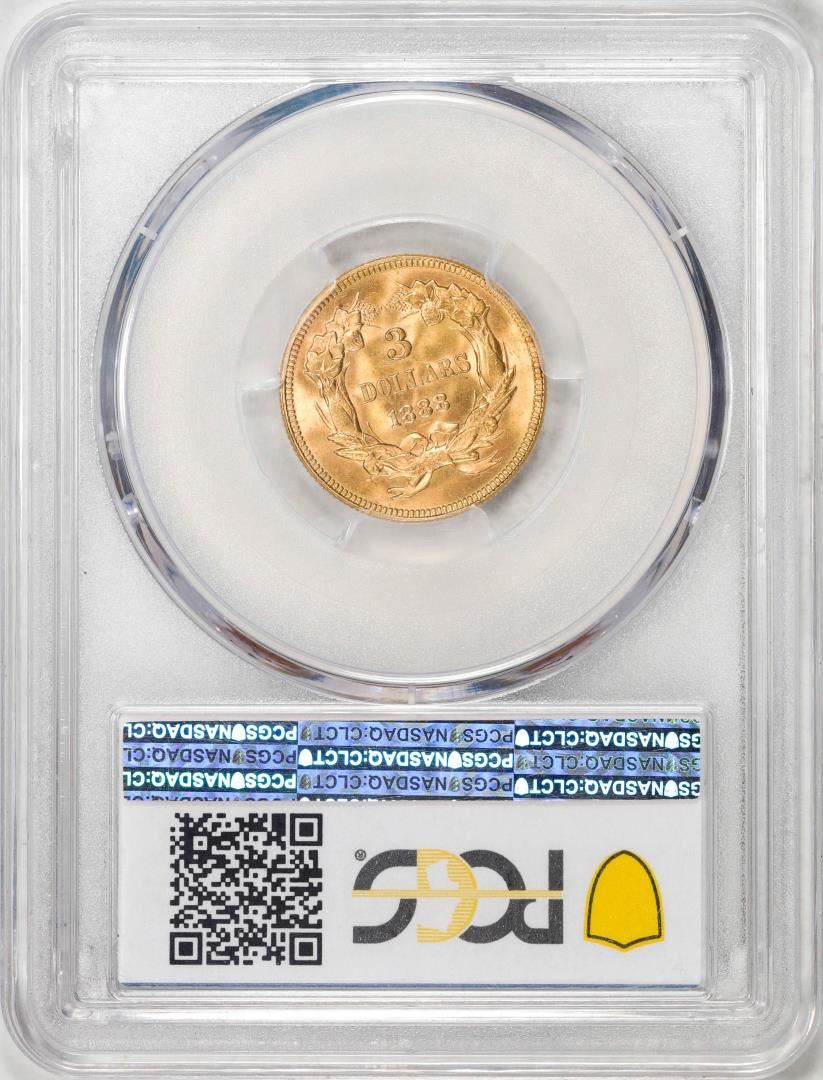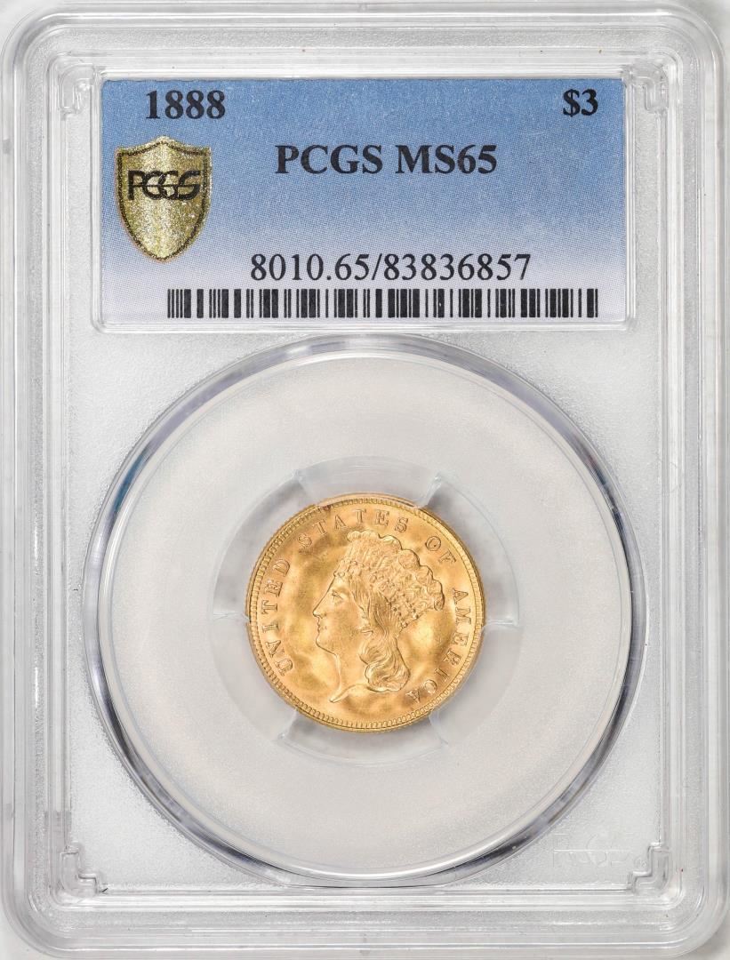 One 1888 $3 Indian Princess Head Gold Coin PCGS MS65. PCGS Graded.