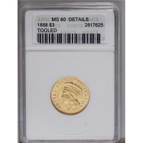 1888 $3 --Tooled--ANACS. MS60 Details. At first glance,