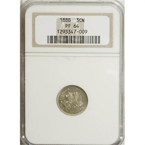 <B>1888 3CN PR64 NGC.</B></I> NGC Census: (210/519). PCGS Population (337/559). Mintage: 4,582. Numismedia Wsl. Price for NGC/PCGS coin in PR64: $304. (#3785)<BR><BR><b>Shipping:</b> Coins & Currency (<a target="_blank" href="http://www.heritageauctions.com/common/shipping.php">view shipping information</a>)