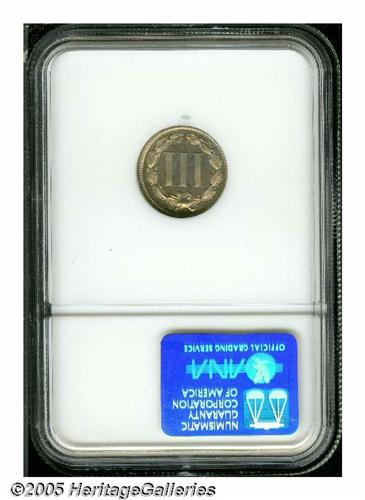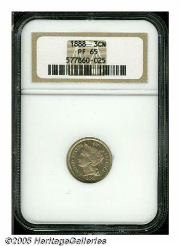 <B>1888<3CN> PR65 NGC.</B></I> Highly attractive, nearly cameo obverse with layers of orange and blue. A few faint strike-throughs are noted on the reverse. The design is particularly well-struck.