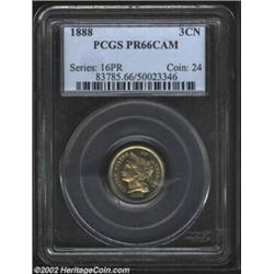 1888 3CN PR66 Cameo PCGS. A pristine, lightly toned proof that has enough frost on the devices to ma