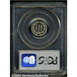 <B>1888<3CN> PR66 Cameo PCGS.</B></I> One of just 4,582 proof Three Cent Nickels produced in 1888, this example has a thin veil of faint gold toning over each side. The frosty devices present a strong contrast against the reflective fields, and the design elements are sharply struck throughout. The only mentionable mark is a small field scratch beneath the E of UNITED. Population: 25 in 66, 2 finer (3/04).<BR><I>From The Willamette Collection.</B></I> <BR><BR><B>Important notice:</B> Heritage usually auctions material at the rate of 200-250 lots per hour. On some occasions eBay Live bid software or the Internet may not be able to keep up with the pace of the auction. We recommend placing a realistic absentee bid now as insurance to avoid disappointment. Occasionally the auctioneer may eliminate or reject an eBay Live bid, and the auctioneer may also reopen a lot after the close of the eBay live bidding (usually because we missed an audience bid), and may reject your bid even if it shows you as the winning bidder. By bidding via eBay Live, you agree that Heritage may award the lot to another bidder at its sole discretion under the circumstances described above or any other reasonable circumstances. Since eBay bids are not shown to us until we open the lot on the floor, we treat those bids just like floor bids. In most cases the floor responds before the eBay bid is presented to us, due to Internet lag time, so for consistency we have made it a policy that floor bids are always considered first over tie eBay live bids. Also please note that all Heritage lots purchased through eBay Live carry a 20% Buyer's Premium. Please make sure you read the Terms and Conditions before you bid. </span></font></tr></table></td></tr></table>