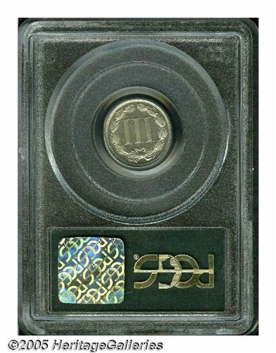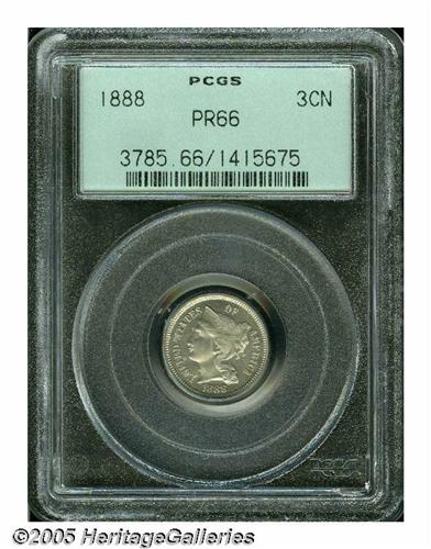 <B>1888<3CN> PR66 PCGS.</B></I> A boldly struck silver-gray specimen, original and essentially pristine. The date is lightly recut within the final digits. In a green label holder.