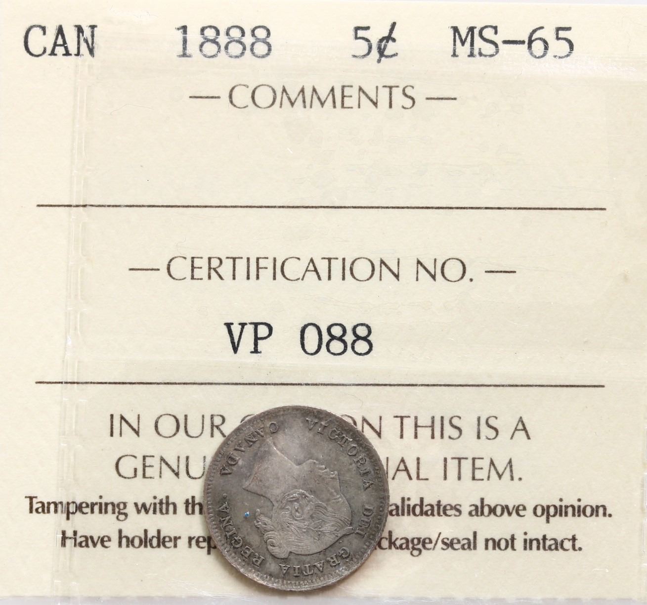 1888 5¢ ICCS Gem Mint State-65 Intense toning over full underlying lustre.
