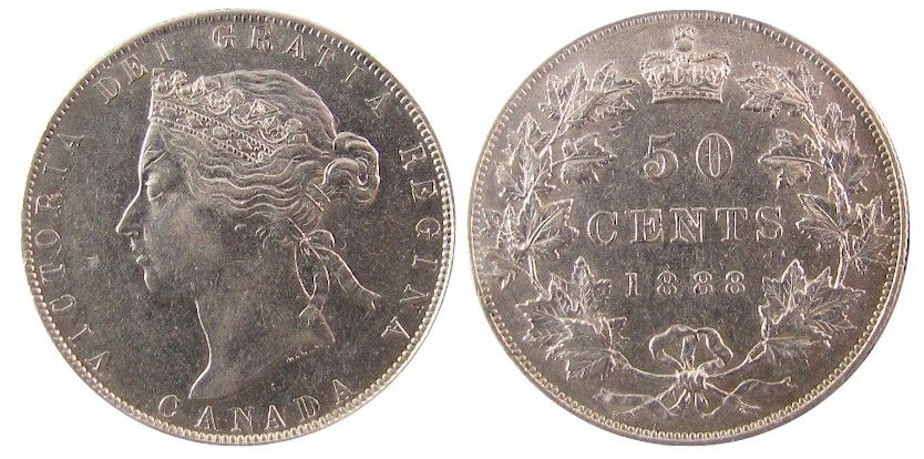 1888 50¢ ICCS EF40. Sharp key issue with nice lustre.