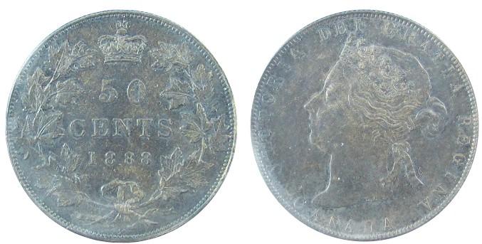 1888 50¢ Obv3 ICCS AU55. Medium tone, lots of lustre. Rare date.
