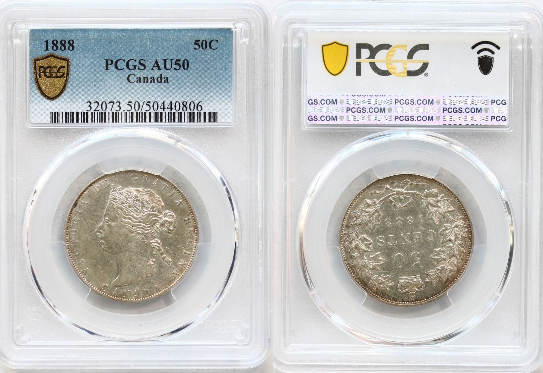 1888 50¢ "Obverse 2" PCGS About Uncirculated-50 Brilliant and lustrous example. A rare key, not often found in these higher grades.