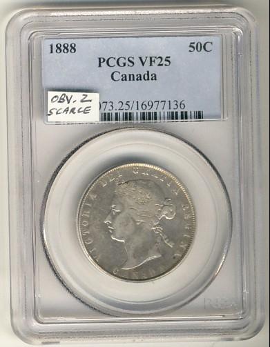 1888 50¢ PCGS VF25. Problem free key date example.
