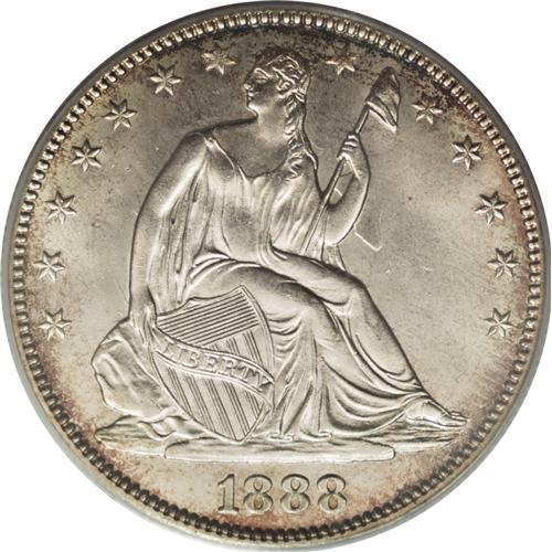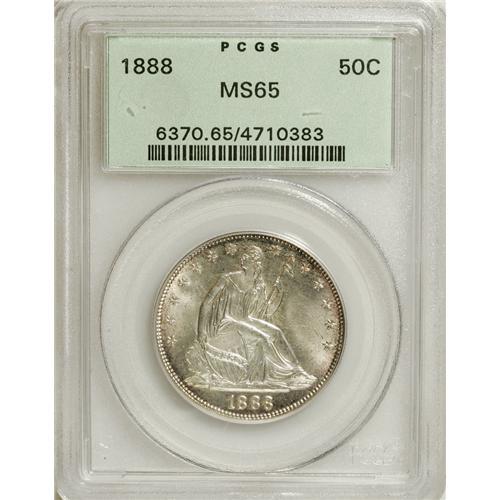 <B>1888 50C MS65 PCGS.</B></I> The low mintages of half dollars from the 1879-1890 era were occasioned by the requirements of the Bland-Allison Act of 1878, which mandated the purchase of vast sums of silver for coinage into Morgan dollars. Interestingly, for some dates, although not the 1888, Seated half dollar experts Randy Wiley and Bill Bugert document more than one die pairing--a surprising development considering the maximum annual business-strike mintage during that time was about 12,000 coins. The present example offers lustrous, untoned centers with a touch of russet around the rims. An especially clean example of this popular issue whose only noticeable interruptions in the fields are light die clashing. Population: 20 in 65, 20 finer (2/07).<BR><I>From The Palakika Collection.</B></I><BR><BR><b>Shipping:</b> Coins & Currency (<a target="_blank" href="http://www.heritageauctions.com/common/shipping.php">view shipping information</a>)