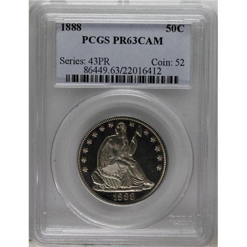 <B>1888 50C PR63 Cameo PCGS.</B></I> A boldly defined Select beauty that has exceptionally deep mirrors and light champagne toning over the reverse. Light, scattered hairlines do not take away from this specimen's remarkable contrast. Population: 4 in 63 Cameo, 22 finer (2/07).<BR><BR><b>Shipping:</b> Coins & Currency (<a target="_blank" href="http://www.heritageauctions.com/common/shipping.php">view shipping information</a>)