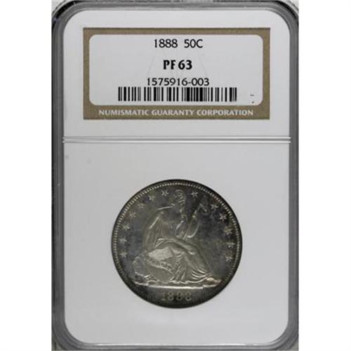 <B>1888 50C PR63 NGC.</B></I> NGC Census: (40/89). PCGS Population (42/78). Mintage: 832. Numismedia Wsl. Price for NGC/PCGS coin in PR63: $875. (#6449)<BR><BR><B>Coin Engraver:</B> Christian Gobrecht<BR><BR><b>Shipping:</b> Coins & Currency (<a target="_blank" href="http://www.heritageauctions.com/common/shipping.php">view shipping information</a>)