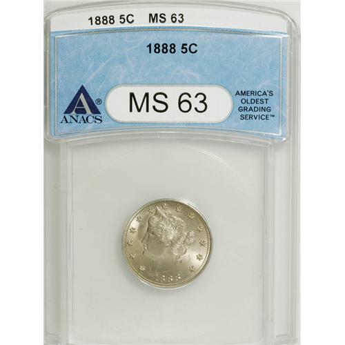1888 5C MS63 ANACS. NGC Census: (48/150). PCGS Pop