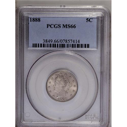 1888 5C MS66 PCGS. Well struck and brilliant, with sub 1888