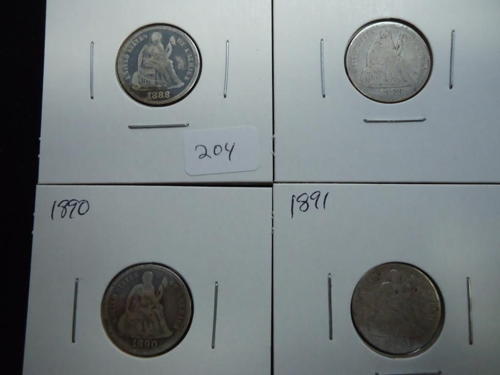 1888,89,90 & 91 SEATED LIBERTY DIMES