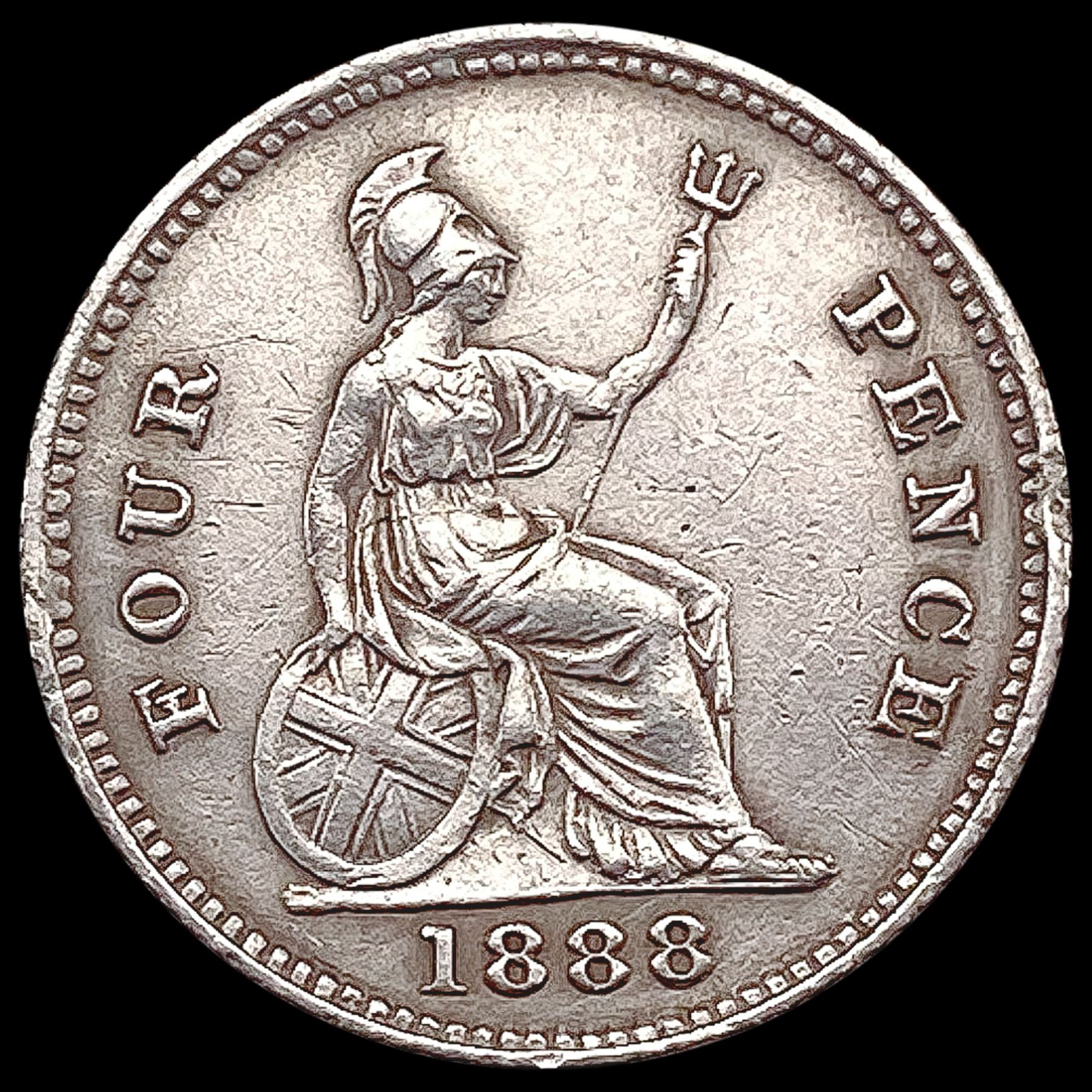 1888 British 4 Pence ABOUT UNCIRCULATED