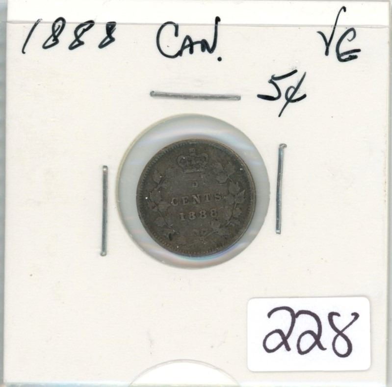 1888 Canadian five cent coin - VG-8