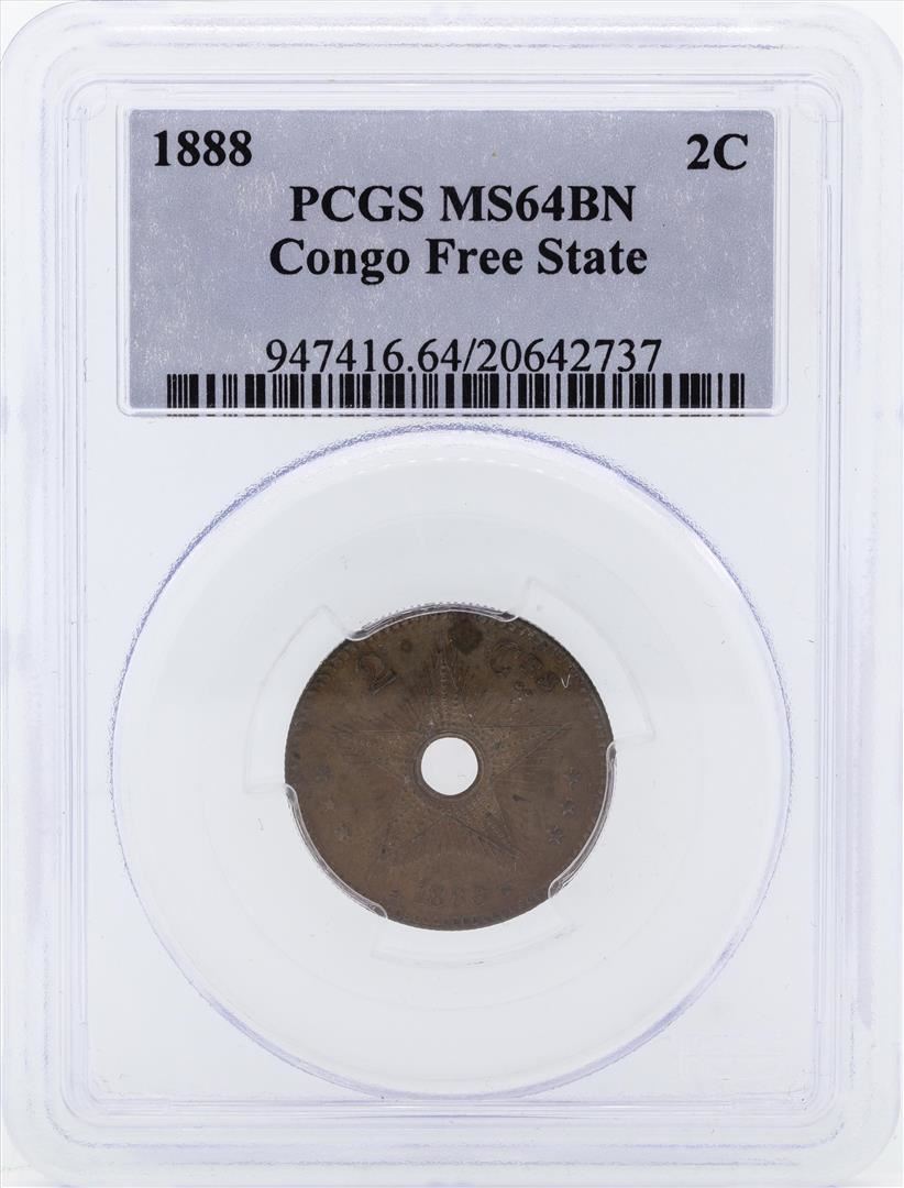 One 1888 Congo Free State 2 Centimes Coin PCGS MS64BN. PCGS Graded.