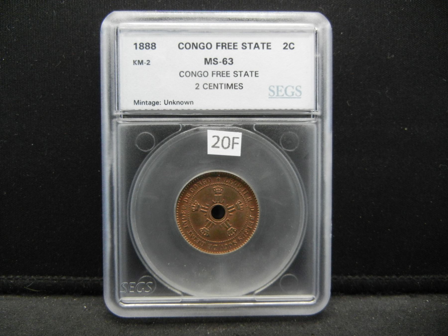 1888 Congo Free State 2 Centimes. SEGS MS-63.