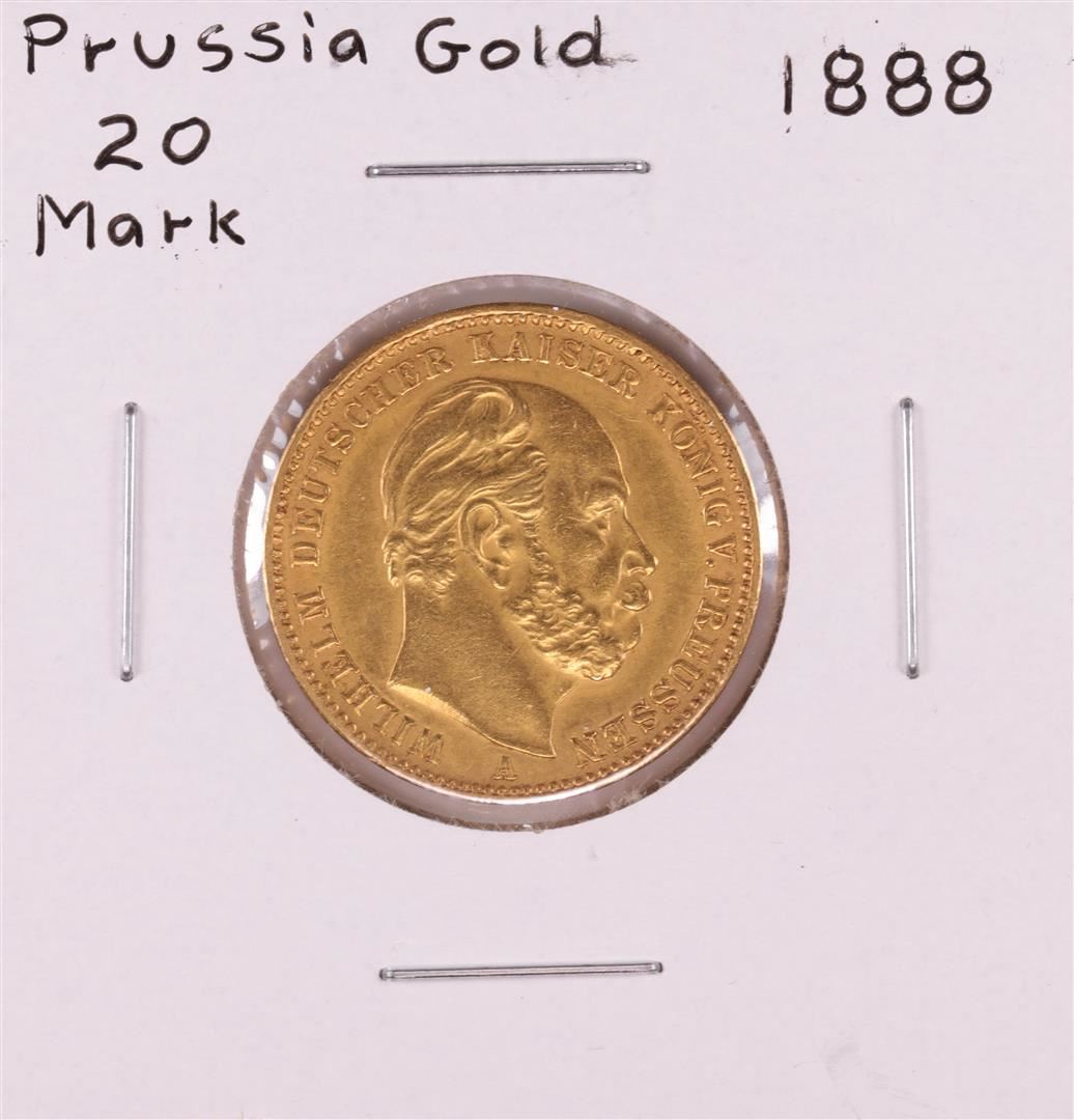 One 1888 Germany 20 Mark Prussia Gold Coin.
