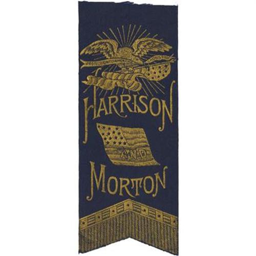 <B>1888 Harrison and Morton Ribbon, with "Protection to American Industry" Slogan.</B></I> A wonderfully clean silk ribbon in exceptional condition. 2.25" x 6".<BR><BR><b>Shipping:</b> Requires 3rd Party Shipping (<a target="_blank" href="http://www.heritageauctions.com/common/shipping.php">view shipping information</a>)