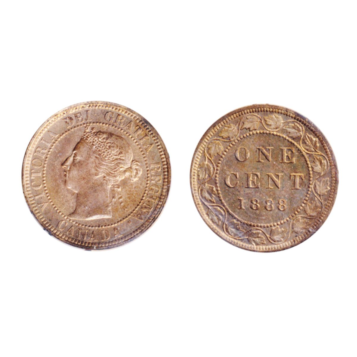 1888. ICCS Mint State-64. Red. 70% remaining red luster.