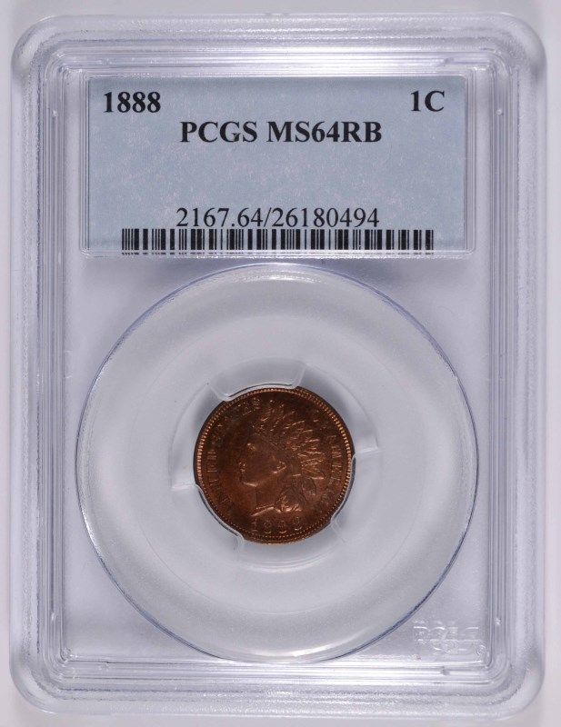 1888 INDIAN HEAD CENT, PCGS MS-64 RB  MOSTLY RED, RARE