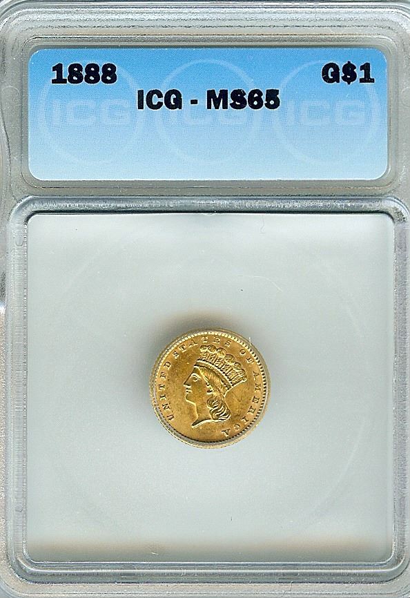 1888 INDIAN PRINCESS HEAD GOLD DOLLAR ICG MS65 RARE THIS NICE!!