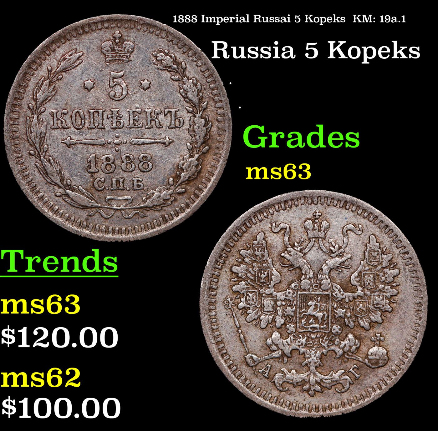 1888 Imperial Russai 5 Kopeks KM: 19a.1 Grades Select Unc.