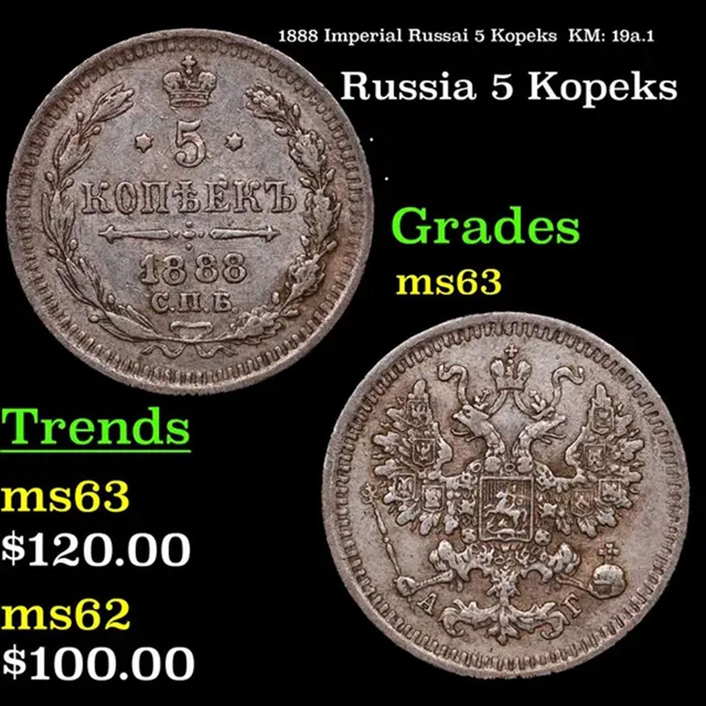 1888 Imperial Russai 5 Kopeks KM: 19a.1 Grades Select Unc.