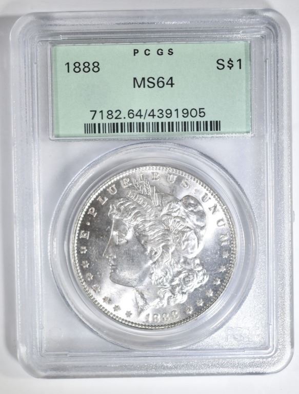 Grading: Every person has their own opinion. It is the responsibility of the buyer to examine and grade to their own satisfaction before they bid. ABSOLUTELY NO COIN RETURNS ON THE BASIS OF GRADE. Buyers shall rely entirely on their own inspection and information. Our estimates are values taken from the latest "Coin World" trends based on t he grade listed of a coin. This value/estimate is not an inducement to bid this amount. Bid the amount you wish. If you have questions or concerns about any coin, call us before you bid.