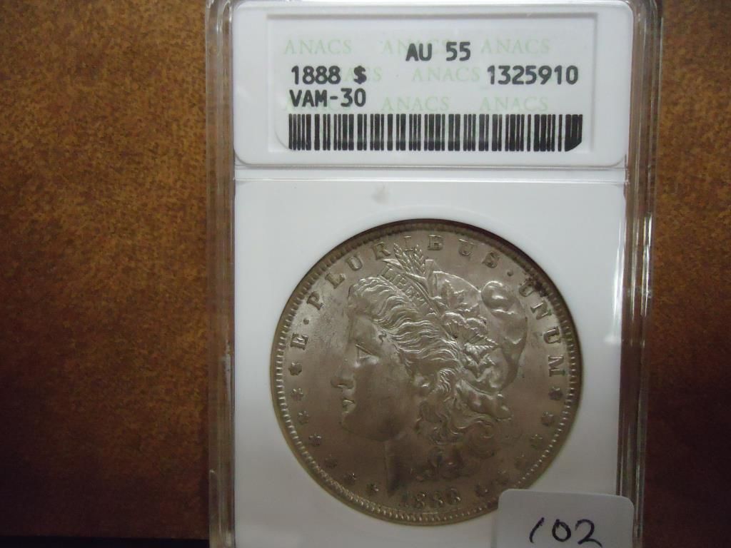 1888 MORGAN SILVER DOLLAR ANACS AU55 VAM-30