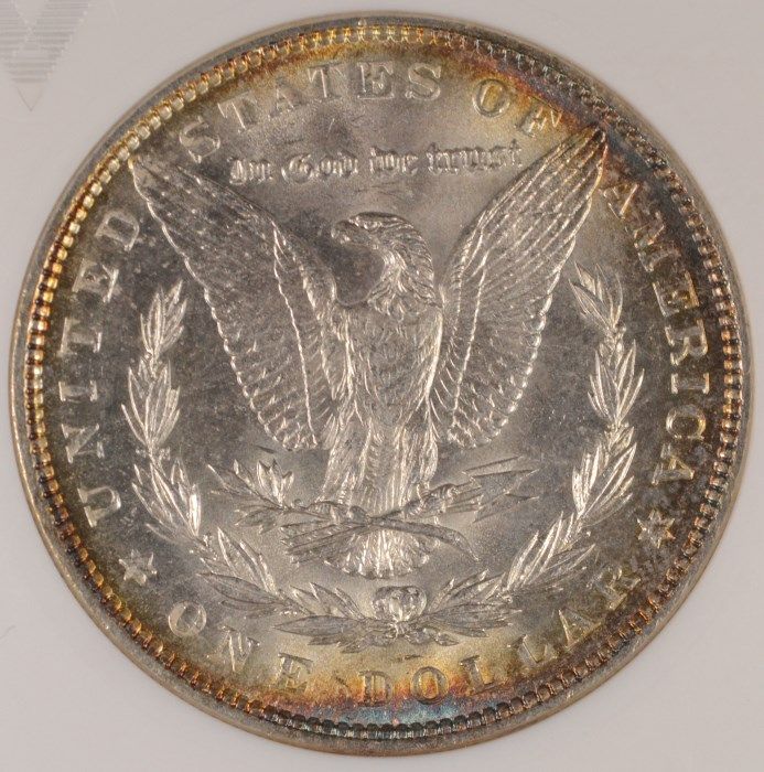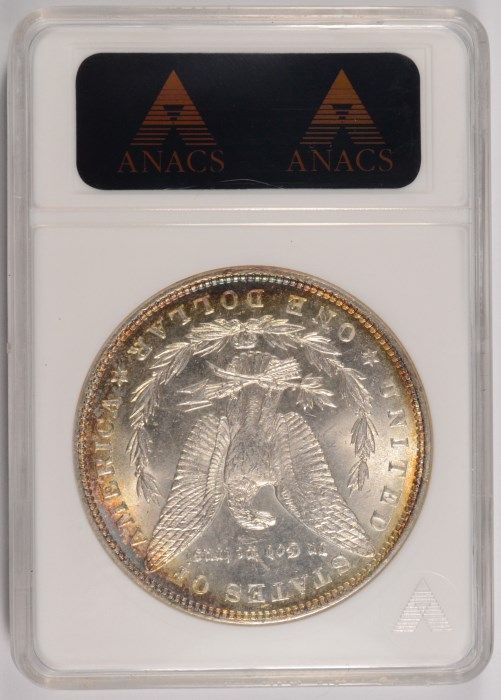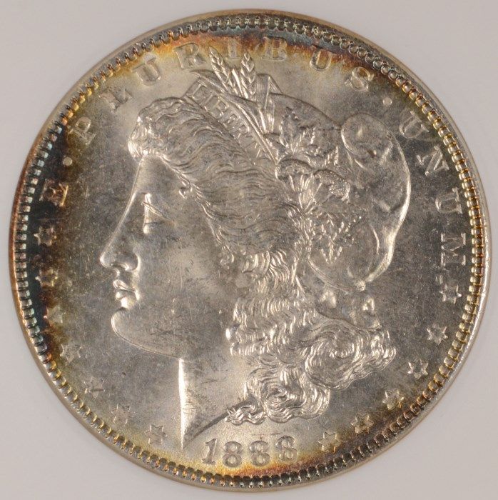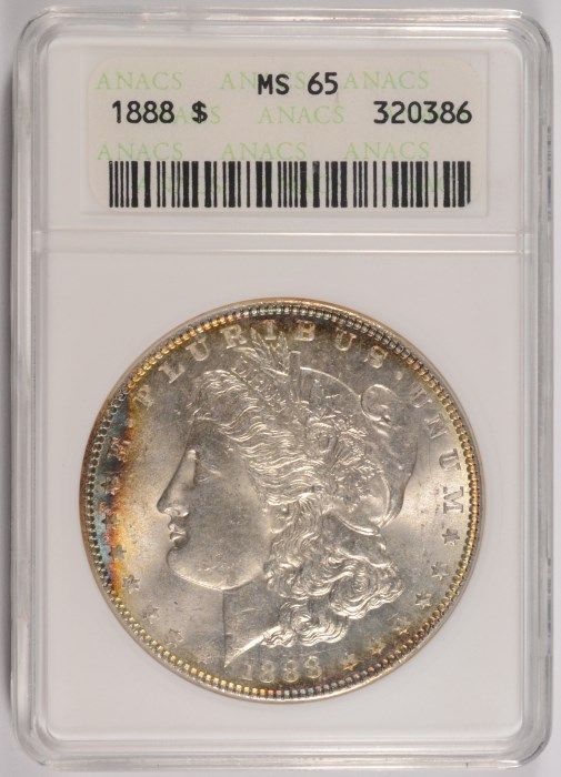 1888 MORGAN SILVER DOLLAR, ANACS MS-65 GEM WITH COLORS!