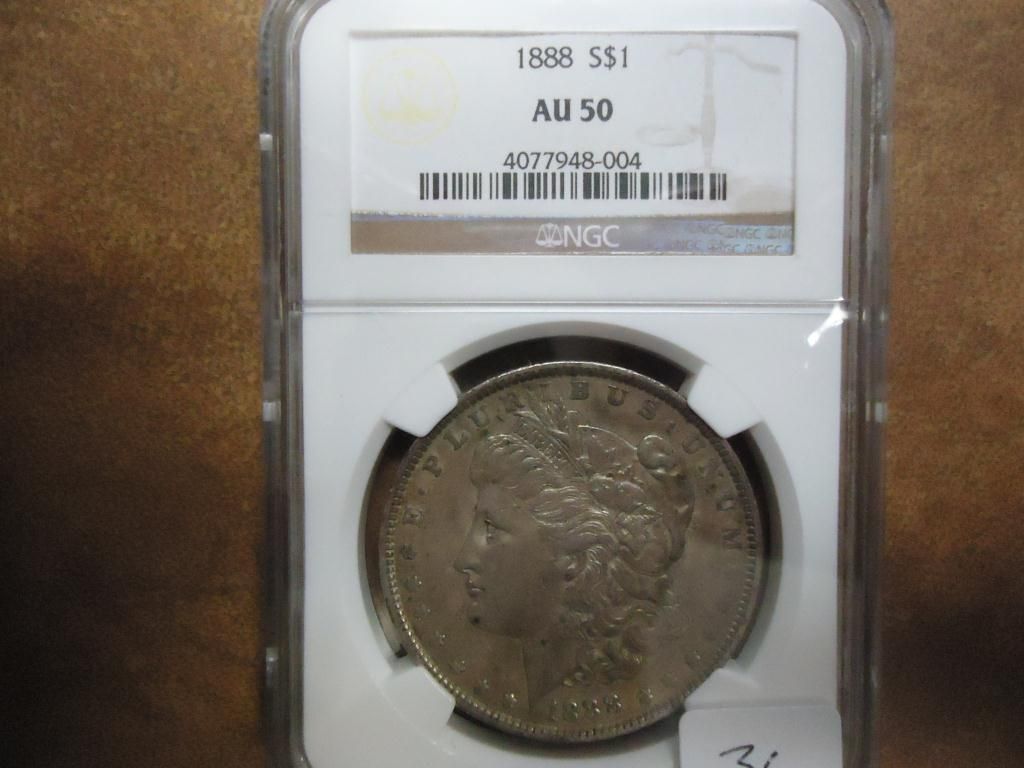 1888 MORGAN SILVER DOLLAR NGC AU50
