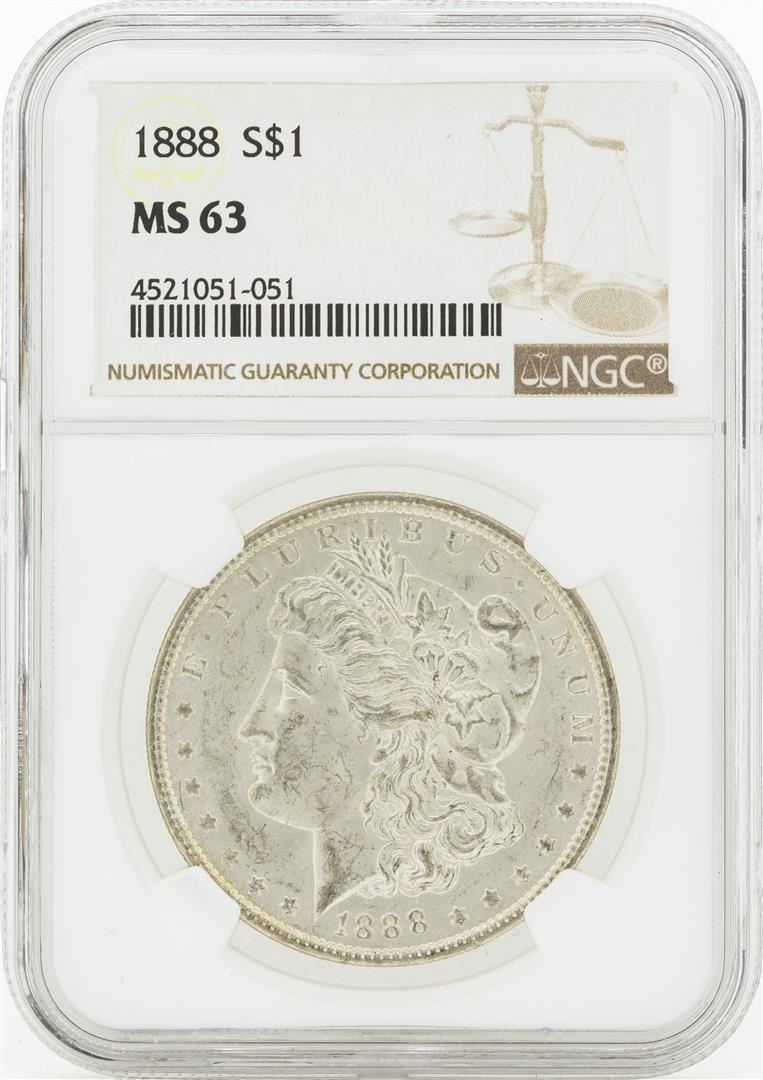 One 1888 MS63 NGC Morgan Silver Dollar NGC Certified.
