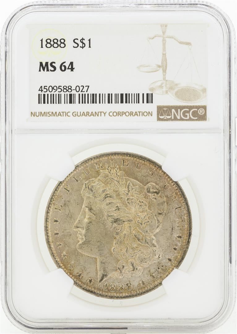 One 1888 MS64 NGC Morgan Silver Dollar NGC Certified.