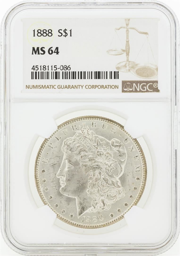 One 1888 MS64 NGC Morgan Silver Dollar NGC Certified.