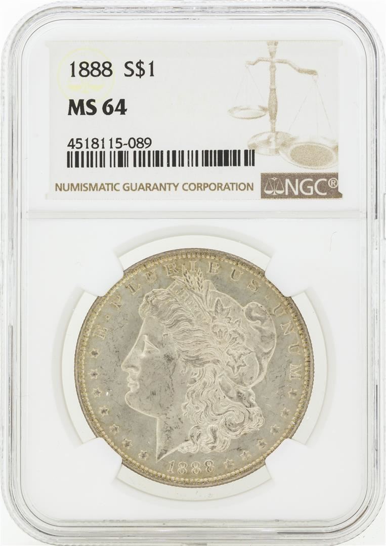 One 1888 MS64 NGC Morgan Silver Dollar NGC Certified.
